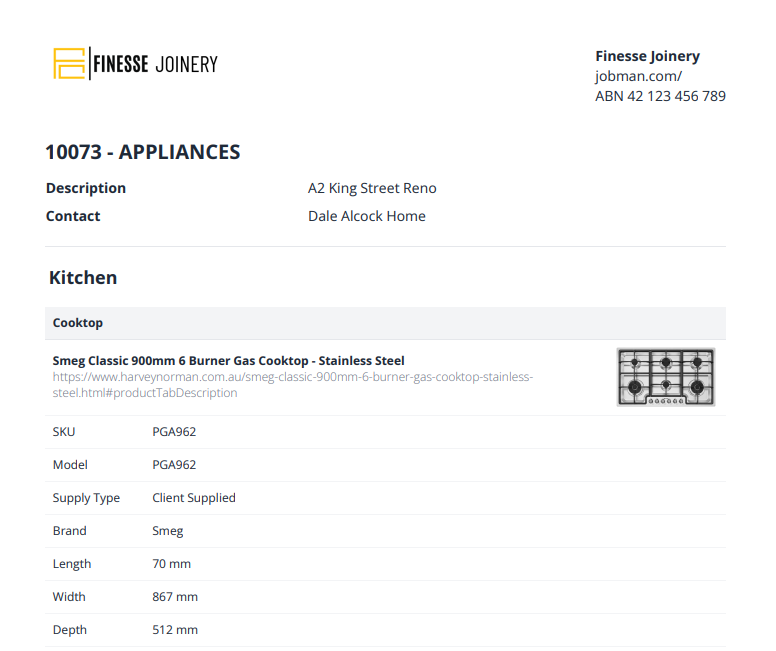 Cabinet Makers, boat builders, RV and caravan manufacturers, order, install, and customise their products to accommodate appliances. Jobman’s appliance module keeps a record of these items logged against each lead and job with appliance specifications.