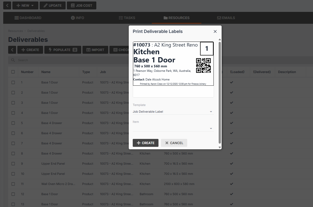 Deliverables are included with Jobman, extending the power of your digital workflow. Use any standard label printer from your local stationery supplier, or integrate label generation directly through your supported CAD/CAM software.